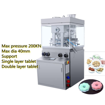 É uma máquina multi-funcional frente e verso da imprensa da tabuleta do novo tipo, que possa pressionar a duro-formação da matéria prima em tabuletas grandes do tamanho, tais como a tabuleta do leite, tabuleta efervescente, tabuleta do cálcio, tabuleta da lavagem da louça, tabuleta de sal, ect.